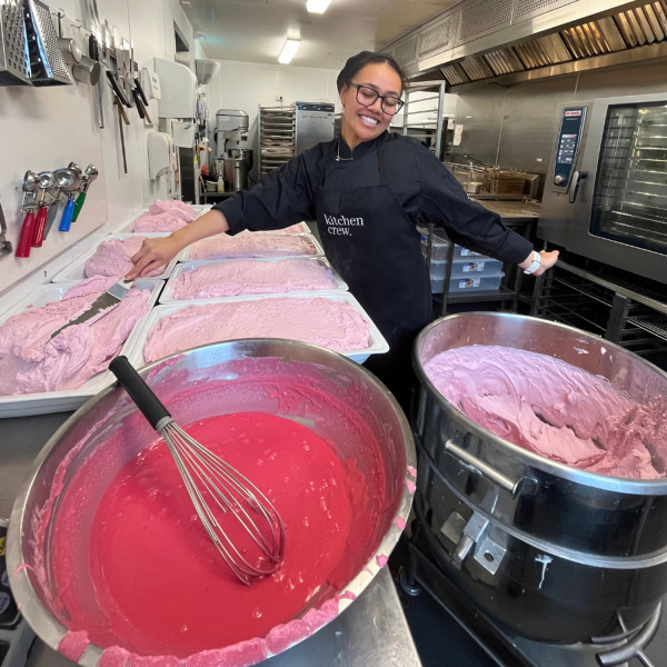 Esther-rose's ServiceIQ journey began when she started her apprenticeship in February 2023. Based at Tupuānuku, a first-year catered hall at the University of Canterbury, she caters for around 650 students daily, preparing full salad bars, hot buffets, grab-and-go snacks and meals, and more.